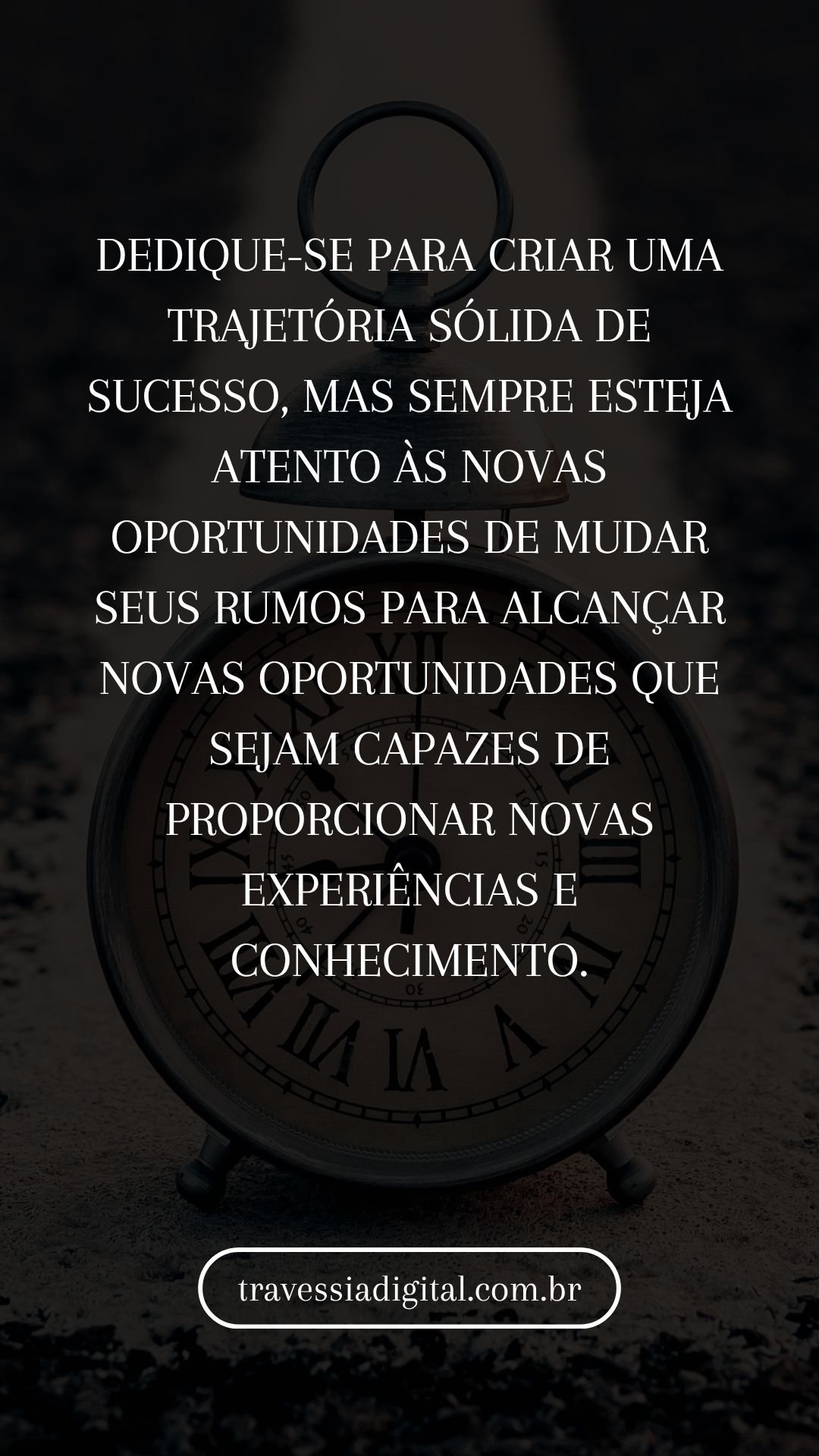 Dedique-se para criar uma trajetória sólida de sucesso, mas sempre esteja atento às novas oportunidades de mudar seus rumos para alcançar novas oportunidades que sejam capazes de proporcionar novas experiências e conhecimento.